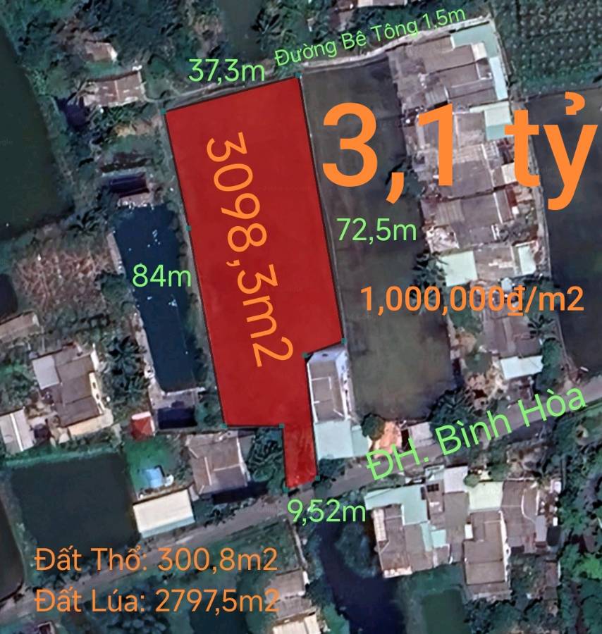 Bán lô đất thổ lúa đường huyện Bình Hòa giá 3,1 tỷ