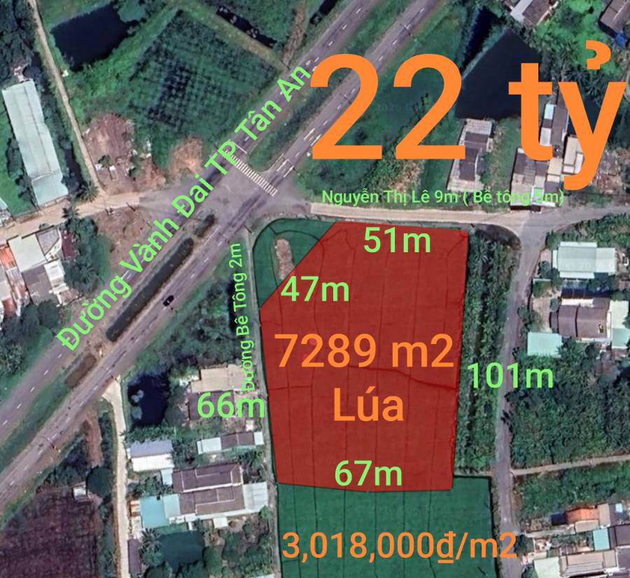 Bán gấp lô đất lúa chuyển thổ đường Vành Đai Tân An giá 22 tỷ