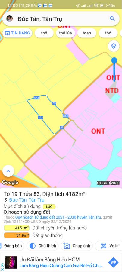 🌏Vị trí nằm khu vực ấp Bình Lợi, xã Đức Tân,Tân Trụ, Long An