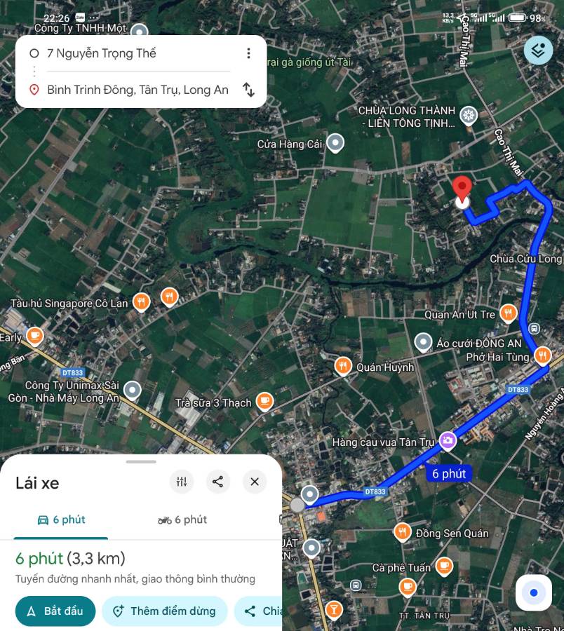 ✅Cách UBND huyện Tân Trụ 3,3 km