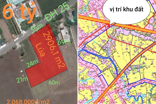 Bán lô đất lúa chuyển thổ mặt tiền DH25 giá 6 tỷ