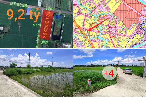 🎯Bán lô đất lúa chuyển thổ mặt tiền Tỉnh Lộ 833B giá 2,5 triệu/m2